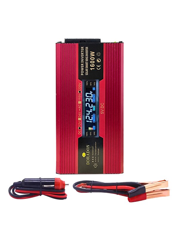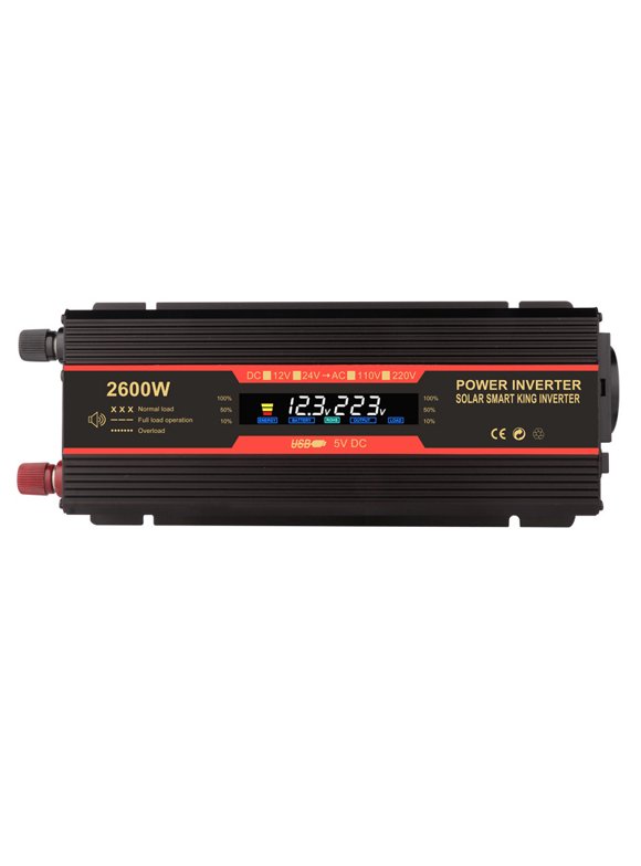 Car Power Inverter Rated 900W DC 12/24V to AC 110V 60HZ Double US Socket with Ambient Light 4 USB Modified Sine Wave