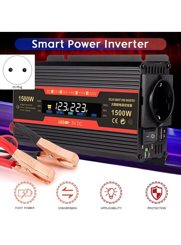 2X Car Inverter 1500W DC 12V To AC 220V Power Inversor 2USB Portable Charger Adapter Converter EU Socket Car Converter