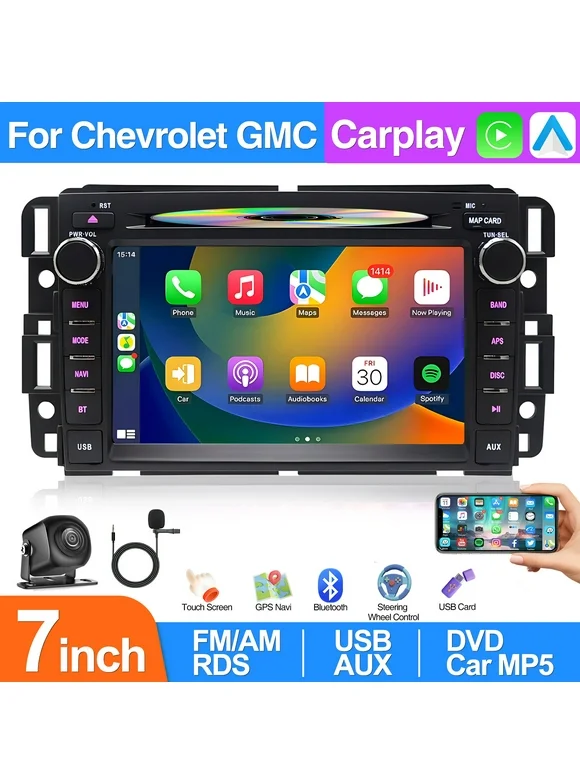 Car Radio 7 inch Double Din Touch Screen DVD Player for GMC Chevy Silverado 1500 2012 in Dash Navigation Quad Core in Dash Touchscreen