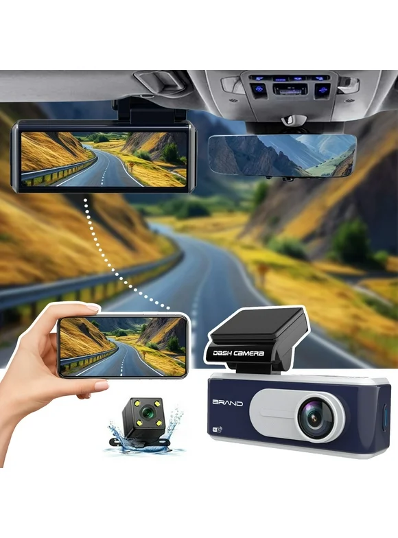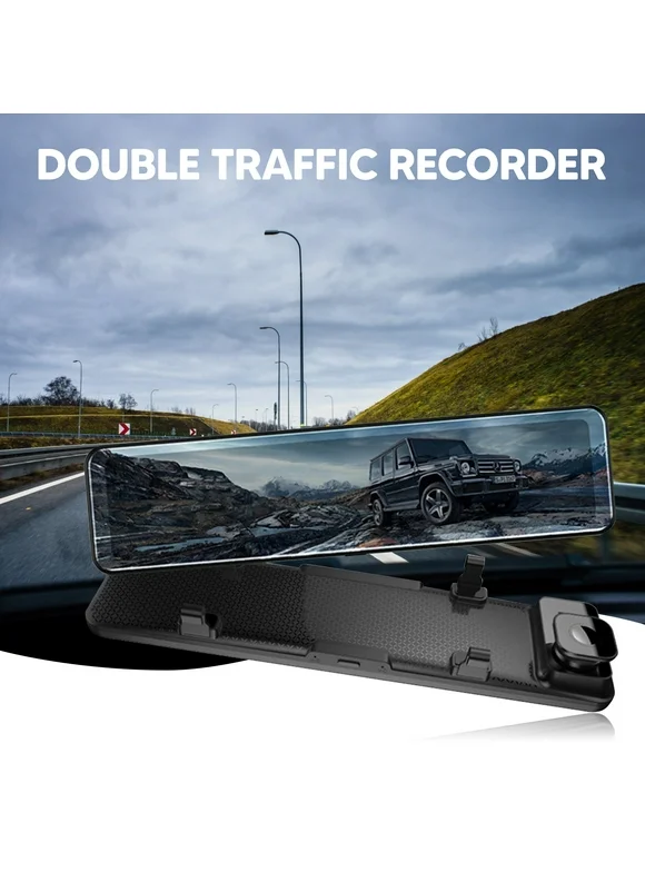 Car Rear View Mirror Camera Dual Dash Cam DVR Video Recorder Driving Recorder with Night Vision Panoramic Rearview Mirror with 4K 12" Full Touch Screen