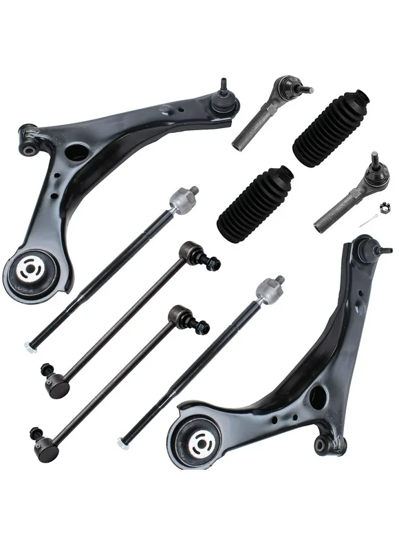 Detroit Axle - Front 10pc Suspension Kit for 2008-2010 Town & Country Dodge Grand Caravan, 2009-2011 VW Routan 2 Lower Control Arms 4 Outer & Inner Tie Rods 2 Sway Bars 2 Boots Replacement