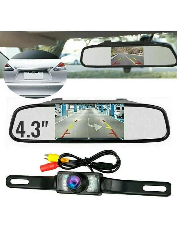 Car Rear View Reverse Night Vision 4.3in Backup Camera Mirror Parking System Kit