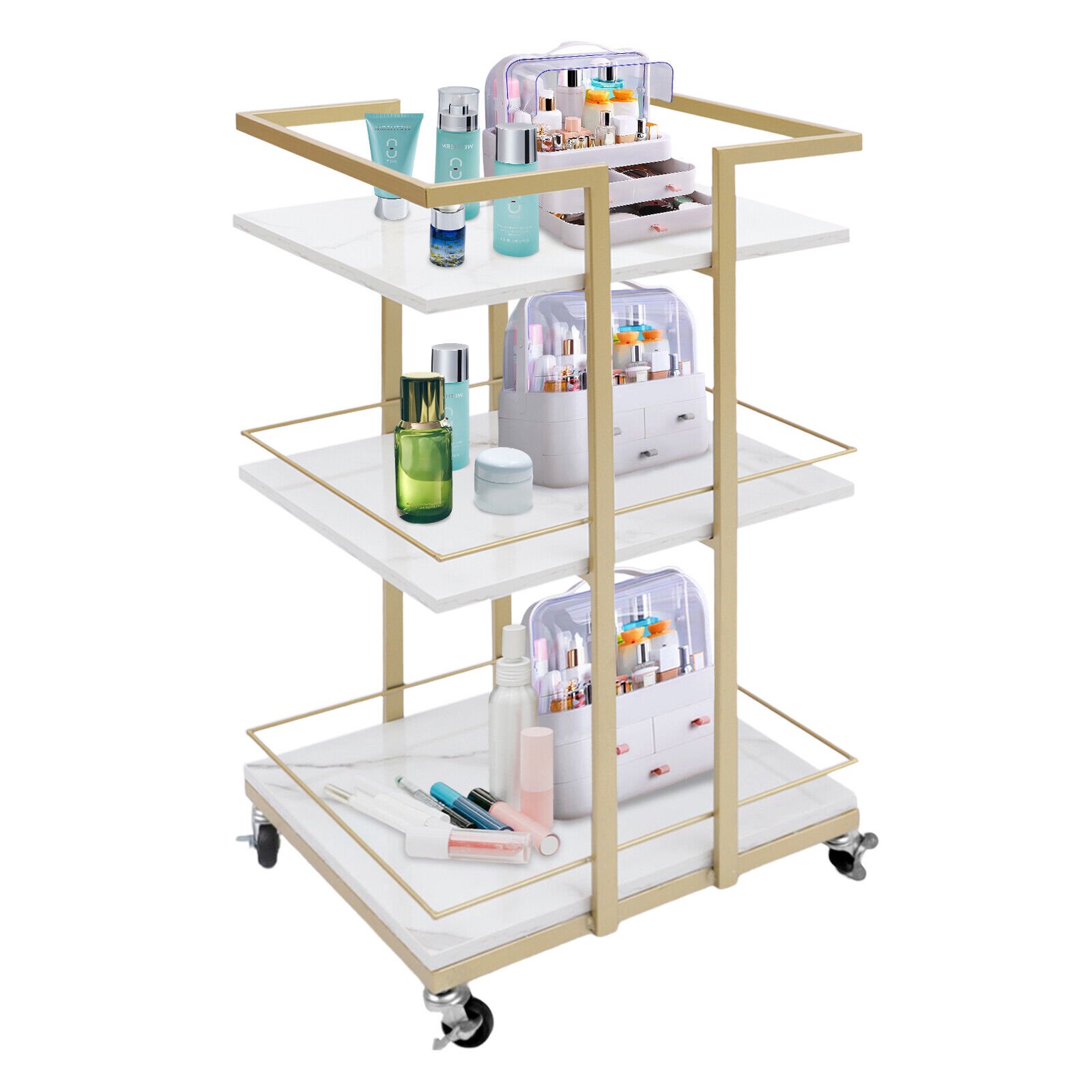 3 Tier Cart Storage Trolley Cart - Mobile Shelving Rack Rolling Cart Barber Cart W/ Wheels