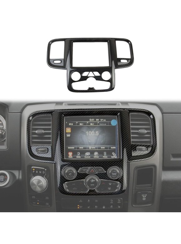 Korlot Carbon Fiber Central DHF10Control AC Vent Navigation Panel Screen DashBoard Trim Cover Accessories for 2013-2018 RAM 1500 2500 3500