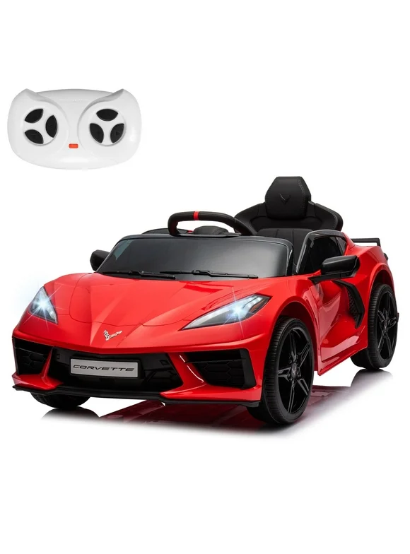 KORIMEFA 12V Kids Ride On Car Licensed Chevrolet Corvette C8, Battery Powered Electric Car with Remote Control, for Ages 3-6 Years Old Boys Girls, Red