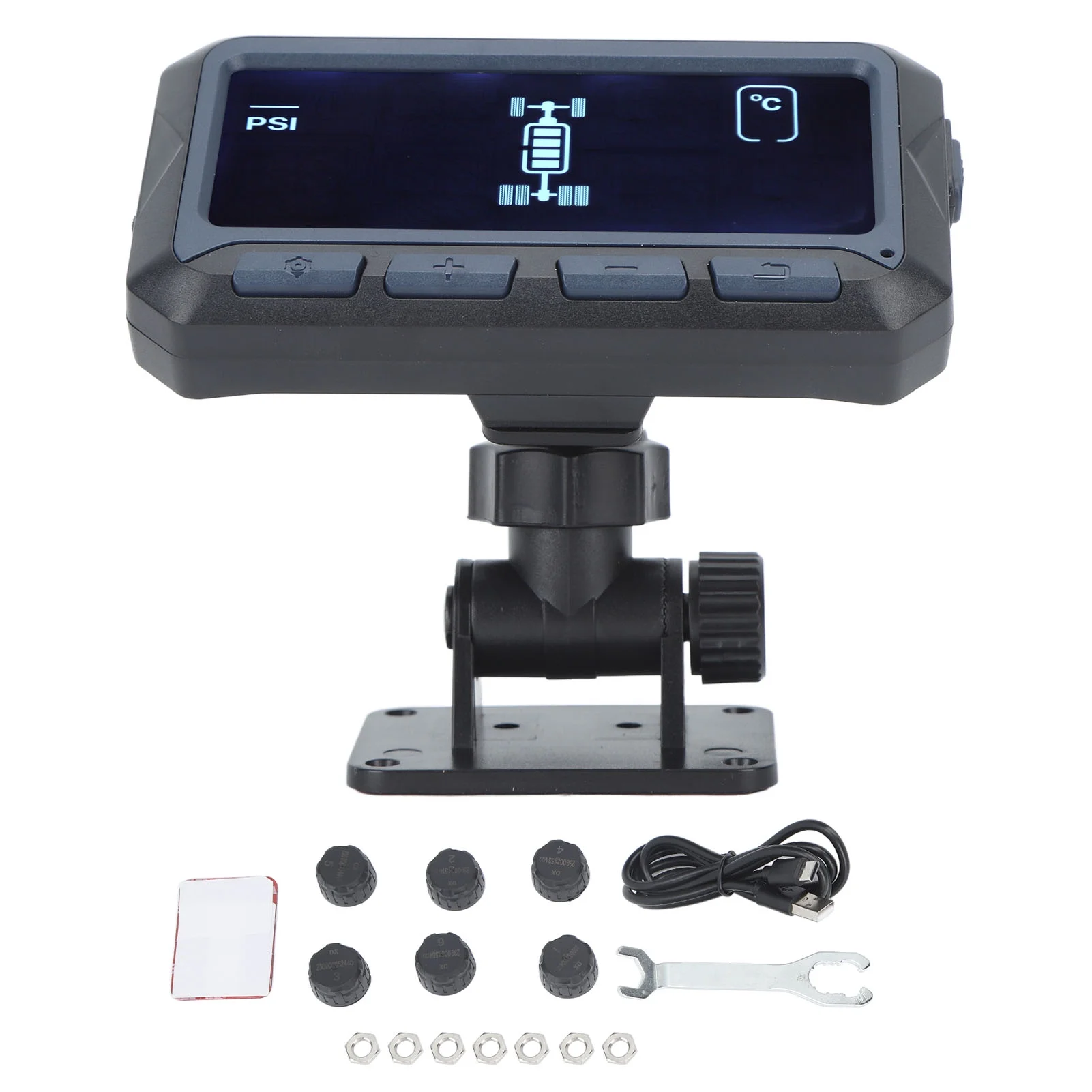 3.3in Solar Wireless Tire Pressure Monitor 6 Sensor DC 5V Solar Powered TPMS for Car RV Truck Motorcycles