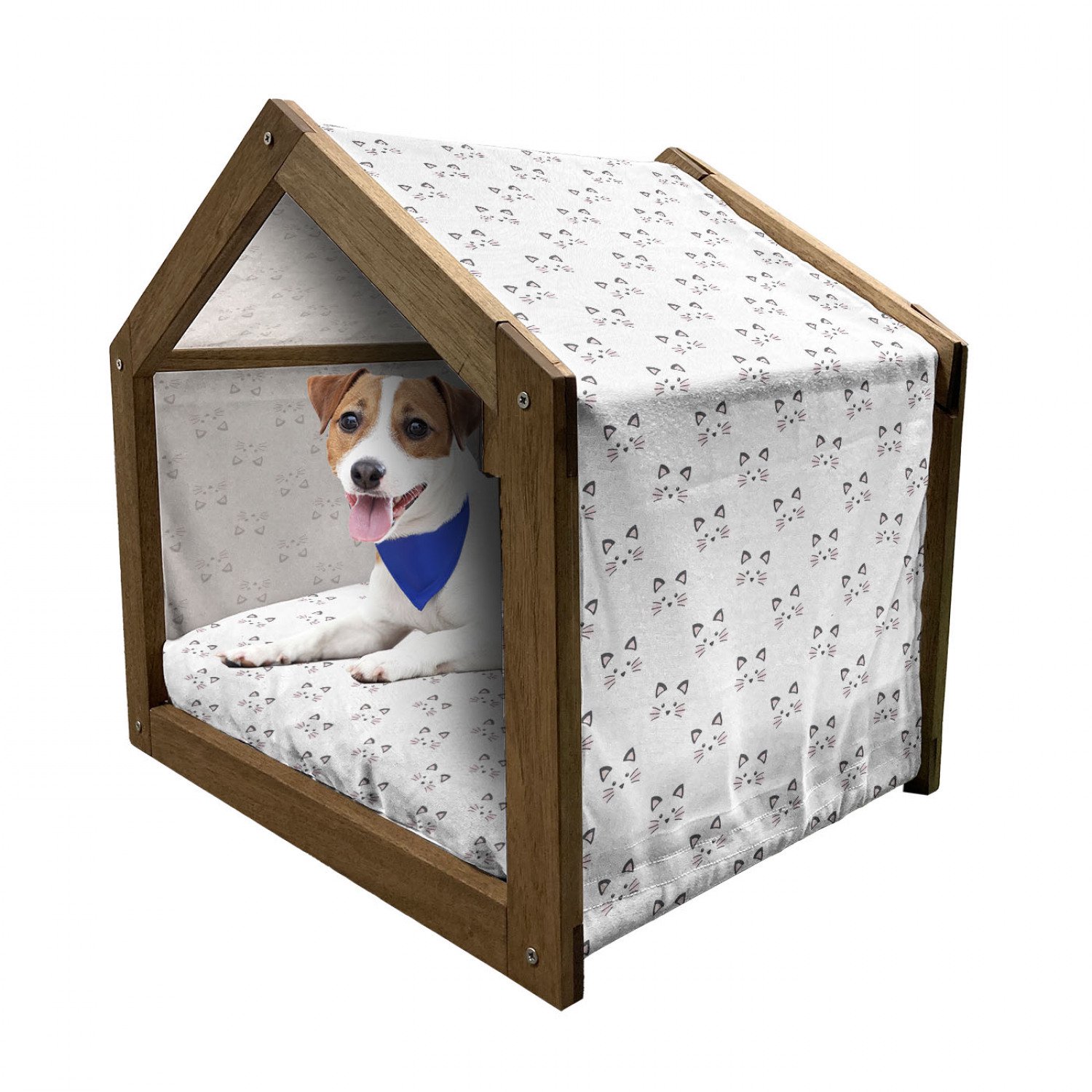 Kitten Pet House, Sketching of a Blushing Cat Face Features Cartoon Style Hand Drawn Cat Whiskers, Outdoor & Indoor Portable Dog Kennel with Pillow and Cover, 5 Sizes, Grey Pale Pink, by Ambesonne