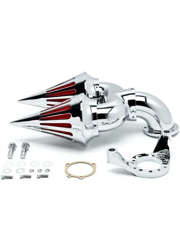 Krator Chrome Dual Spike Intake Air Cleaner Filter Kit Compatible with Harley CV Carb Delphi V-Twin