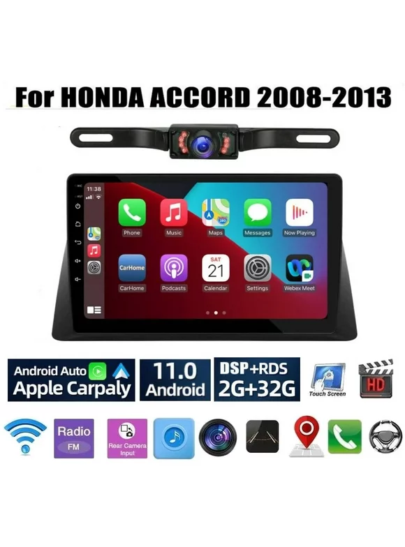 Car Stereo Radio for Honda Accord 8 2008-2013 10.1" Touch Screen Android 11 Video Player Support Wireless Carplay Android Auto WIFI GPS Navigation SWC Backup Camera 2+32G, Black