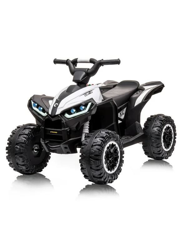 KTENME 12V Kids Ride-On Electric ATV, 4-Wheeler Off-Road 4WD Car Toy w/2 Control Modes, Treaded Tires, LED Lights, Accelerator Handle,Foot Pedal,Spring Suspension,AUX Port