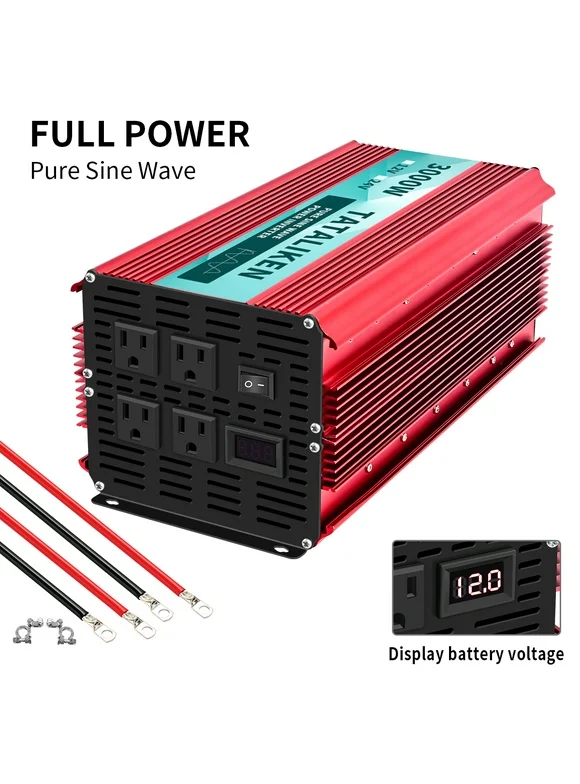 TATALIKEN 3000 Watts 6000 Watts Pure Sine Wave Power Inverter DC 12V to AC 110V/120V Car Inverter with 4 AC Outlets for Power Tools Home Vehicles RV Truck, LCD Display