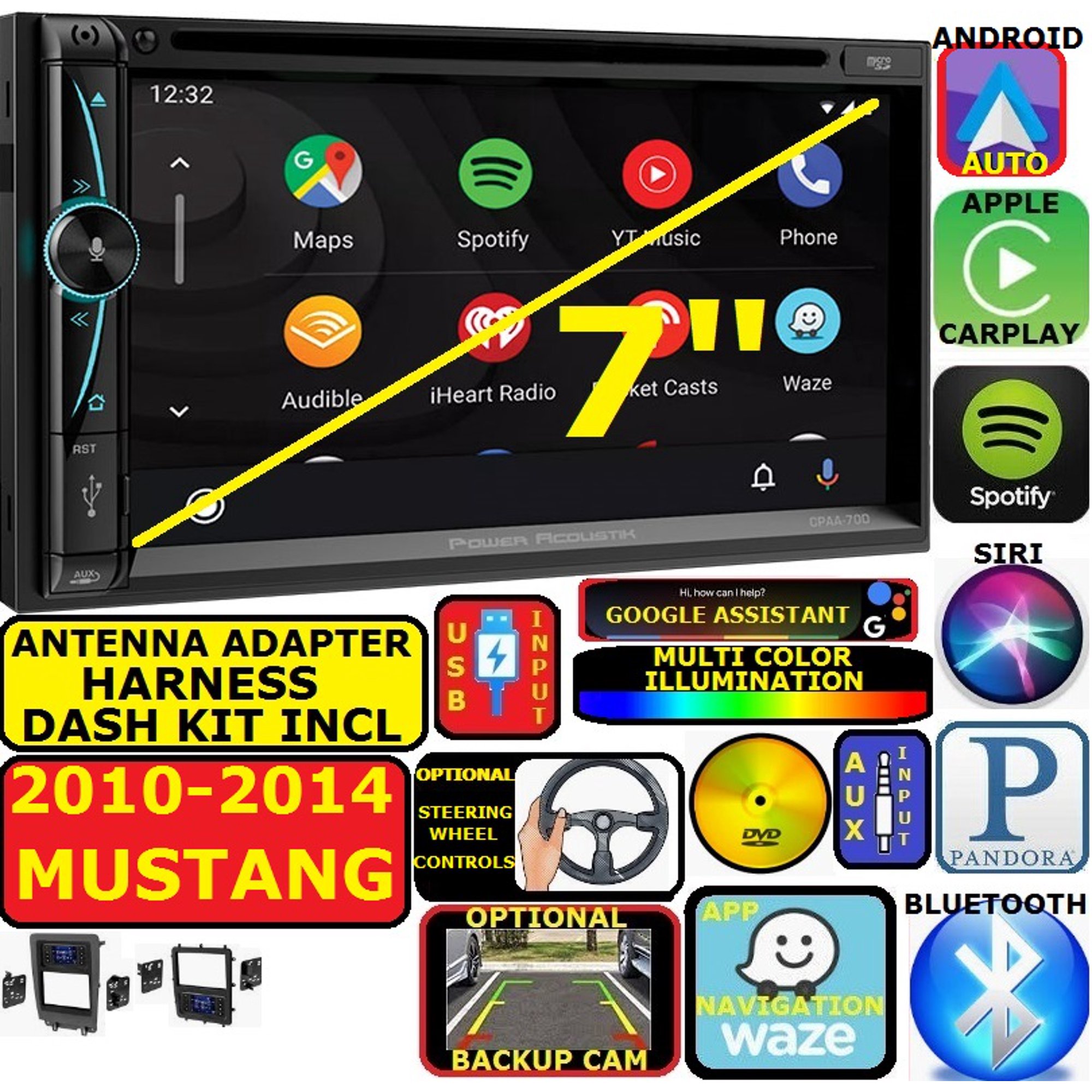 2010-2014 MUSTANG NAV BLUETOOTH CD/DVD CARPLAY ANDROID AUTO CAR RADIO STEREO