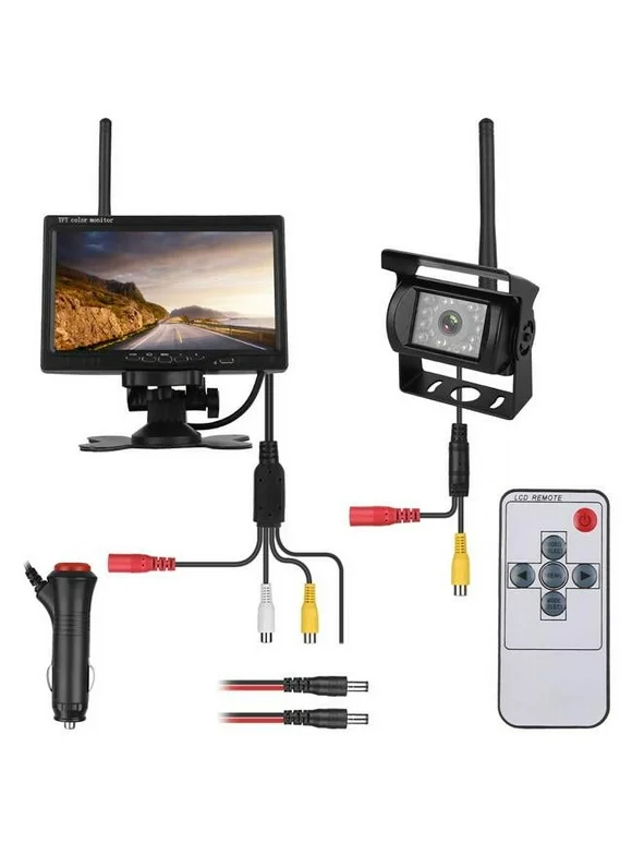 Wireless Backup Camera System Vehicle Rear View Monitor Kit IP67 Waterproof Car Parking Reverse System with 7In Screen Night Vision 2.4G Stable Signal
