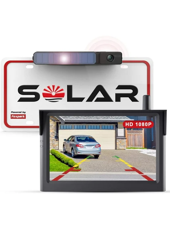 Wireless Backup Camera Solar Rear View Parking System for Car, 2 Channels Reverse Camera Wireless with Monitor Easy Installation,Solar Battery License Plate Camera for Trailer RV