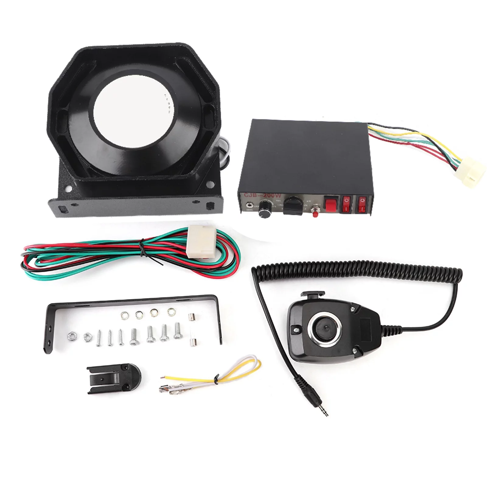 DC12V 200W Sound Loud Car Warning Alarm for Police Fire Siren Horn PA Speaker MIC System
