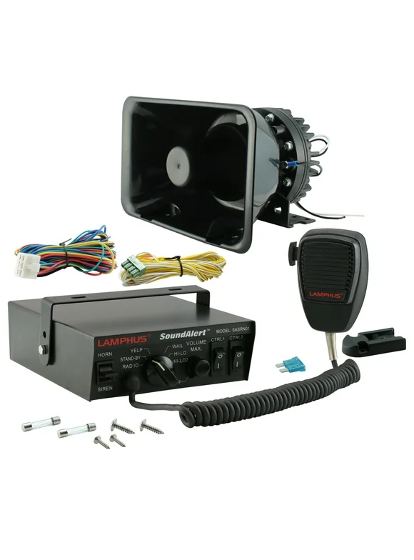 LAMPHUS SoundAlert Siren & Speaker PA System [100W] [6 Modes] [Heavy Duty] [120-130dB] [Microphone] [Hands-Free] [Dual 20A Switches] Emergency Horn Sound System for Police Cars & Fire Trucks