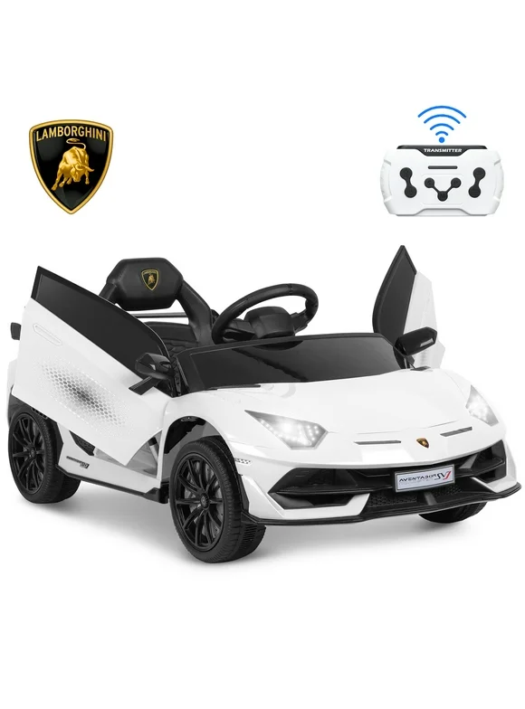 12V Powered Kids Ride on Car Toy with Remote Control, Licensed Lamborghini Sport Car for Girls Boys 3-5 Years Old, Electric Vehicle Car w/ Bluetooth, Fours Wheels (White)