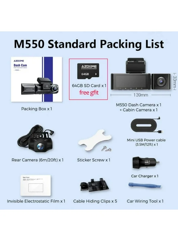 LCACAJZ Cam M550 4K+1080P Built-in GPS WiFi Car Camera Front Inside Rear 3 Way IR Night Vision Car DVR Support Rear Cam