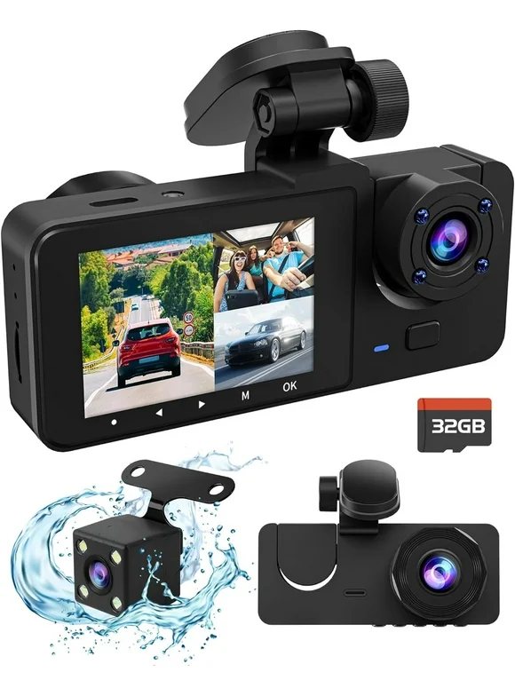 3 Channel Dash Cam Front and Rear Inside,4K Full UHD Dash Camera for Cars with Free 32GB SD Card,Built-in Super Night Vision,WDR,Loop Recording,24H Parking Mode