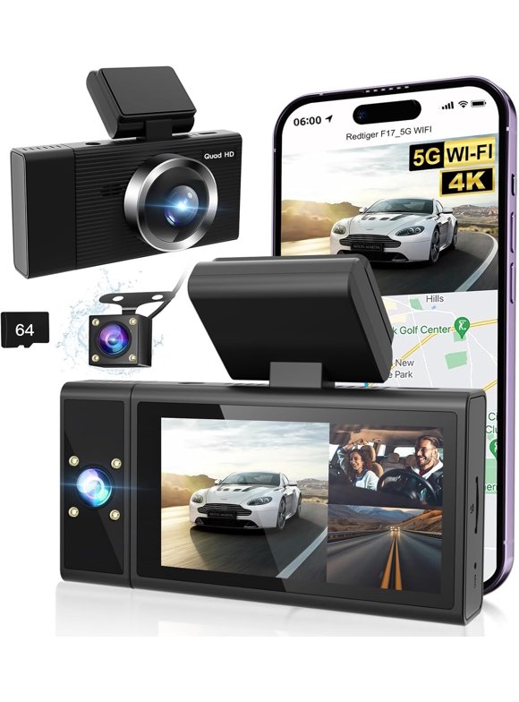 3 Channel Dash Cam Front and Rear,4K Full HD Dash Camera for Cars Built-in WiFi Car Dashboard Camera Recorder 170Wide Angle,WDR G-Sensor Parking Mode.