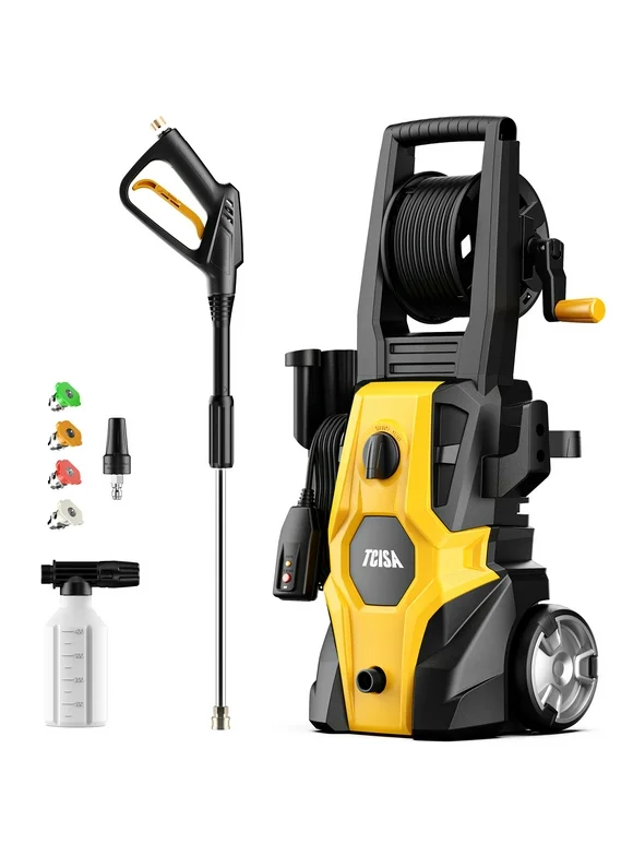 TCISA 3500 PSI Electric Pressure Washer , 35FT Power Cord 20FT Hose 5 Nozzles, Soap Cannon for Car Garden Yard Hom