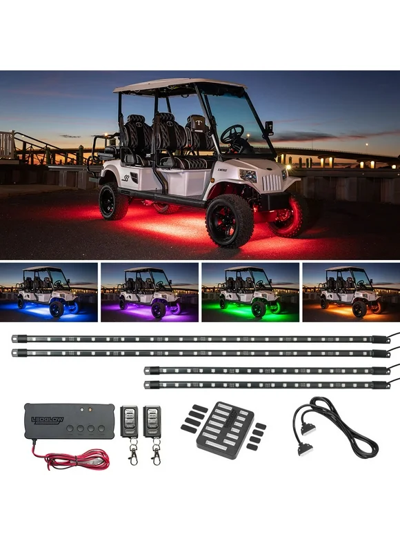 LEDGlow 4pc Million Color LED 6 Seater Limo Golf Cart Underbody Lighting Kit