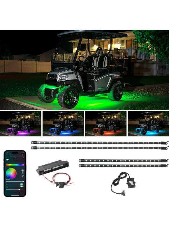 LEDGlow Bluetooth 4pc Million Color LED Golf Cart Underbody Lighting Kit for Standard Wheelbase 4-Seater