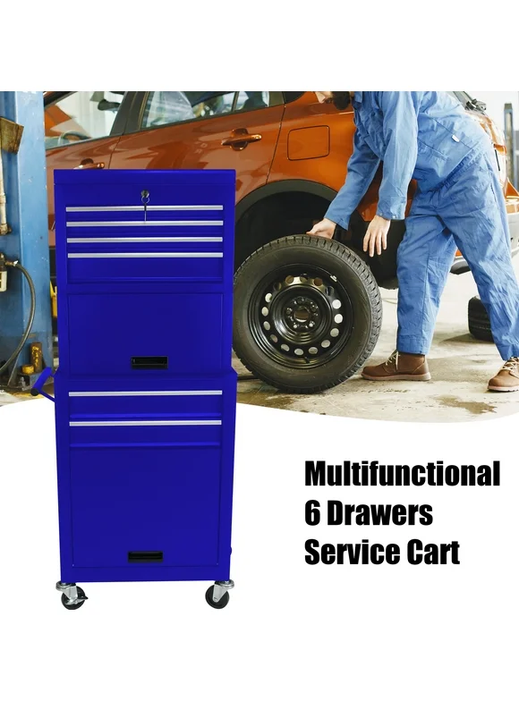 3-IN-1 Tool Box on Wheels - Seizeen Rolling Tool Chest with 6 Drawers, Garage Storage Cabinet for Tool Organizer, Mobile Toolbox Cart for Workshop Home, Blue