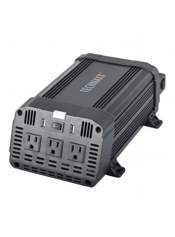Technaxx Car Power Inverter TE16, 3X Plugs, 2X USB Ports, T?V Rheinland Certified, converts 12v to 120v - Power Output is 1200W (Continuous) & 2400W (Peak)