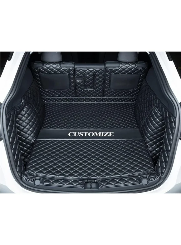 Trunk Liner Full Coverage Cargo Mats Custom for BMW-Tesla-Mercedes-Honda-Lexus-Subaru 95% Car Makes Car Trunk Mats All Weather Boot Liner -Black with Black Stitching
