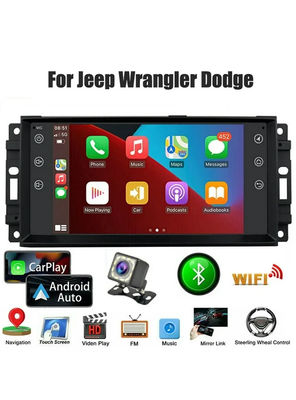 LICHENGTAI Car Radio Stereo Fit for Jeep Wrangler Dodge, 7" Double Din Touchscreen Car Stereo Android Radio with Wireless Apple CarPlay, Bluetooth, WiFi, GPS, RDS/FM Radio