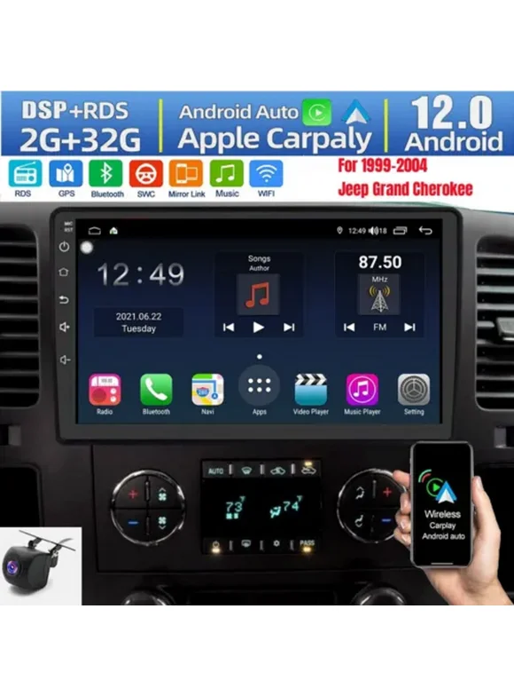 LICHENGTAI Car Stereo Fit for 1999-2004 Jeep Grand Cherokee, Built-in Wireless CarPlay and Android Auto, 9" Touch Screen Bluetooth Car Radio Support Mirror Link GPS FM SWC DSP, +AHD Backup Camera