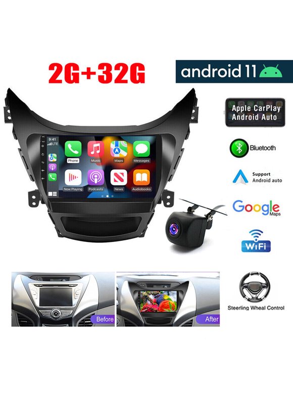 LICHENGTAI Car Radio Stereo Fit for Hyundai Elantra 2011 2012 2013, Wireless Apple CarPlay & Wireless Android Auto 9 Inch Touchscreen Android Car Stereo, GPS Navigation, AHD Backup Camera, 2G+32G