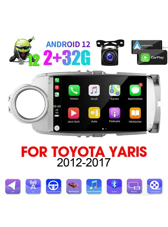 LICHENGTAI Fit for Toyota Yaris 2012-2017 Android 13 Car Navigation 9 In built-in Carplay + Android Auto,2 + 32G + AHD Camera Car Stereo Radio