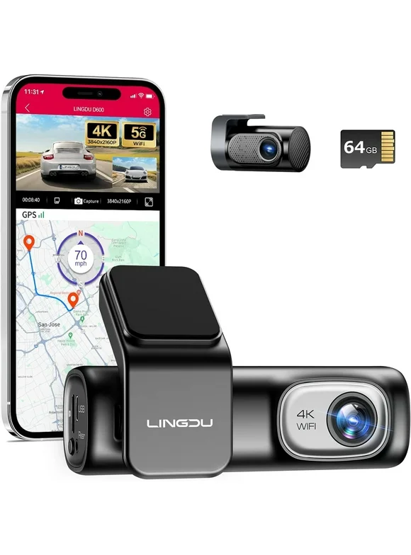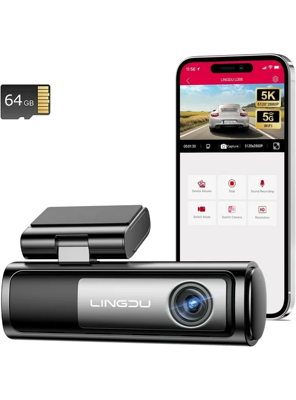 LINGDU Dash Cam,5K Dashcam for Car, 5GHz WiFi GPS Dash Camera, Super Night Vision with WDR and Starvis Sensor, Free 64GB SD Card Support 256GB Max, Voice Control, Parking Mode