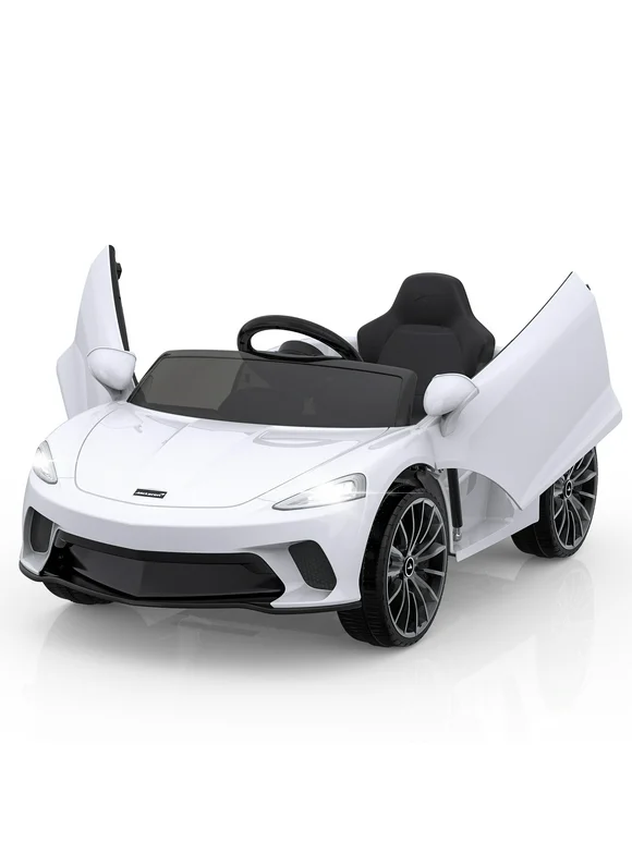 Lingstar Ride on Car for Kids 12V Luxury Car Ride on Toys Battery Powered Sports Car with 2 Speeds Parent Control Sound System LED Headlights and Hydraulic Doors (Black) (White)
