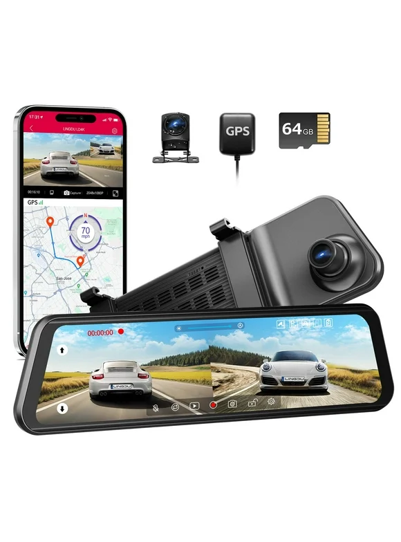 LINGDU Dash Cam Front and Rear, 4K Dash Camera with WiFi GPS, Free 64GB Card, Smart Voice Control, G-Sensor 24H Parking Mode, Loop Recording Night Vision