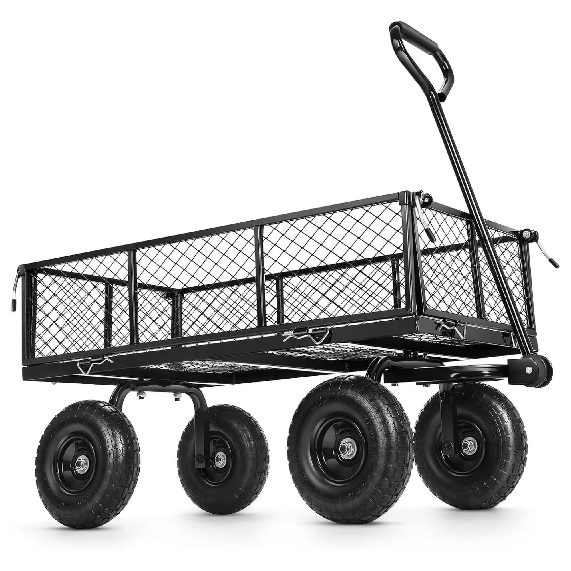 CuYeHt Garden Cart, 660Lb Heavy Duty Garden Wagon, Mesh Foldable Garden Cart with 180° Rotating Handle, Pullable Garden Wagon, Detachable Garden Cart for Yard Garden Beach Farm, Black