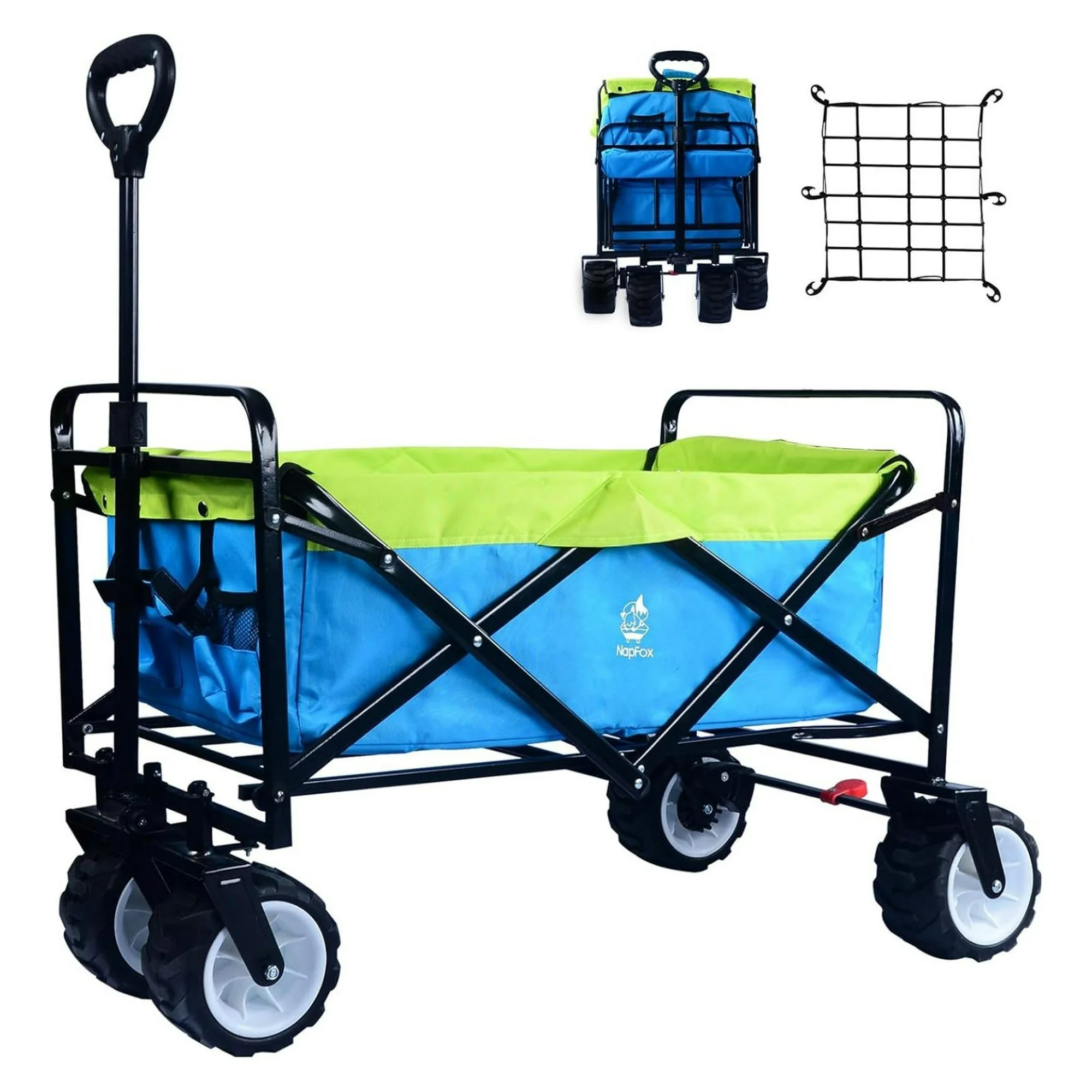 CuYeHt Collapsible Wagon Stroller, Wagons Carts Foldable Grocery Cart on Wheels Beach Wagon Foldable Cart with Wheels, Cup Holders, Adjustable Handle, Safety Straps,Shopping, Garden,Sports, Blue Green