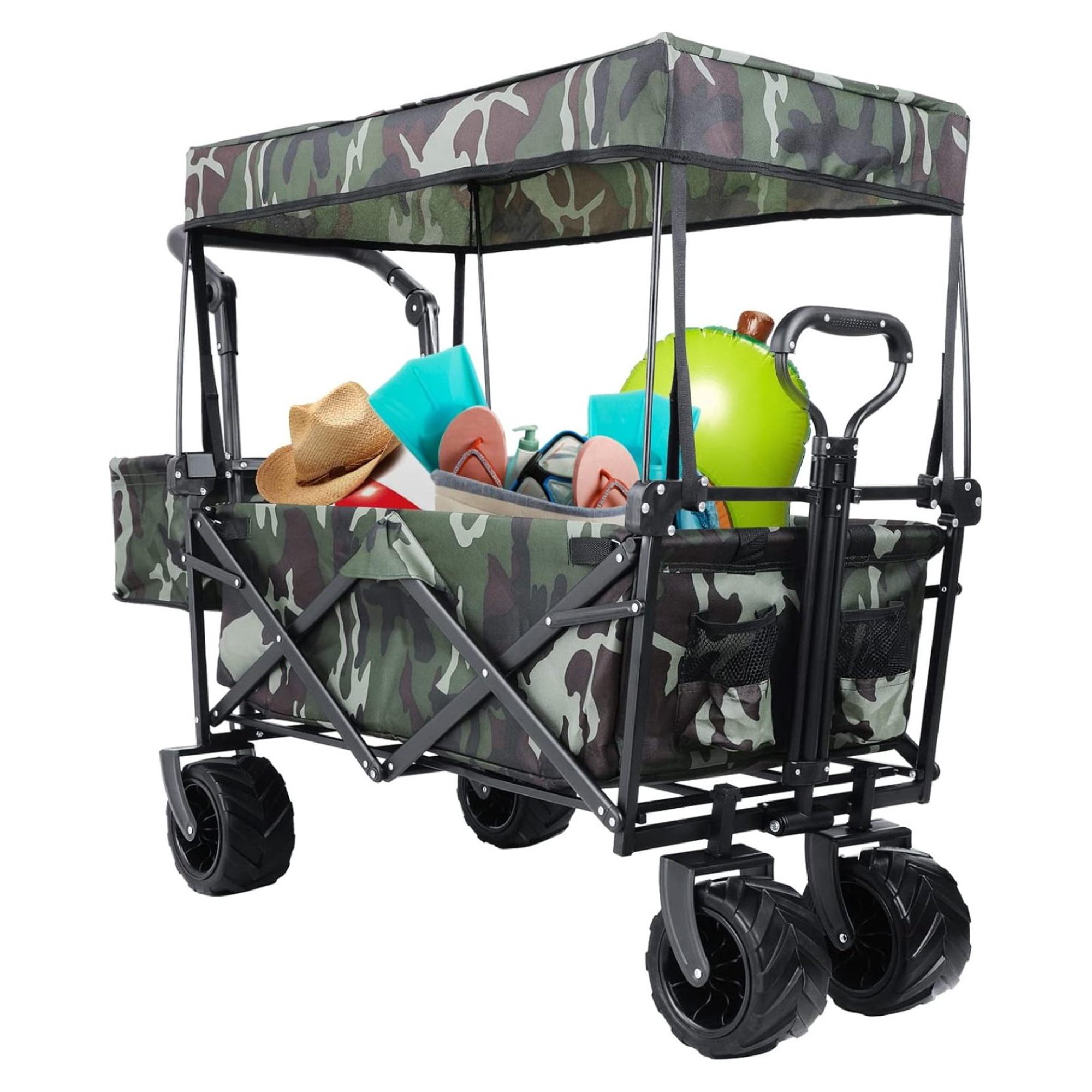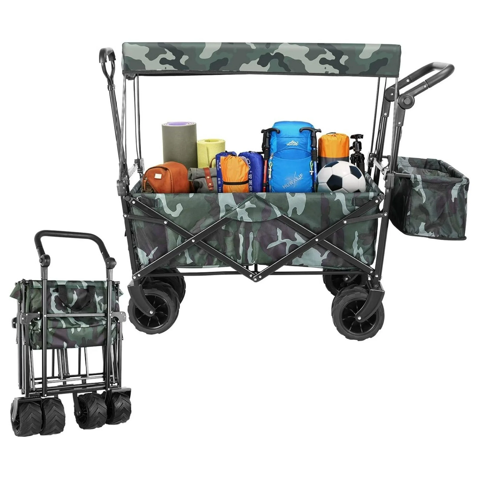 CuYeHt 250Lbs Capacity Foldable Utility Cart with Adjustable Canopy and Pockets, Camouflage, 262L
