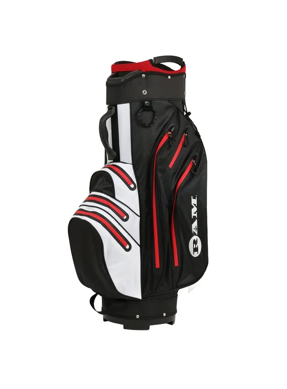 Ram Golf Waterproof Cart Bag - 14 Way Club Dividers Black/White/Red