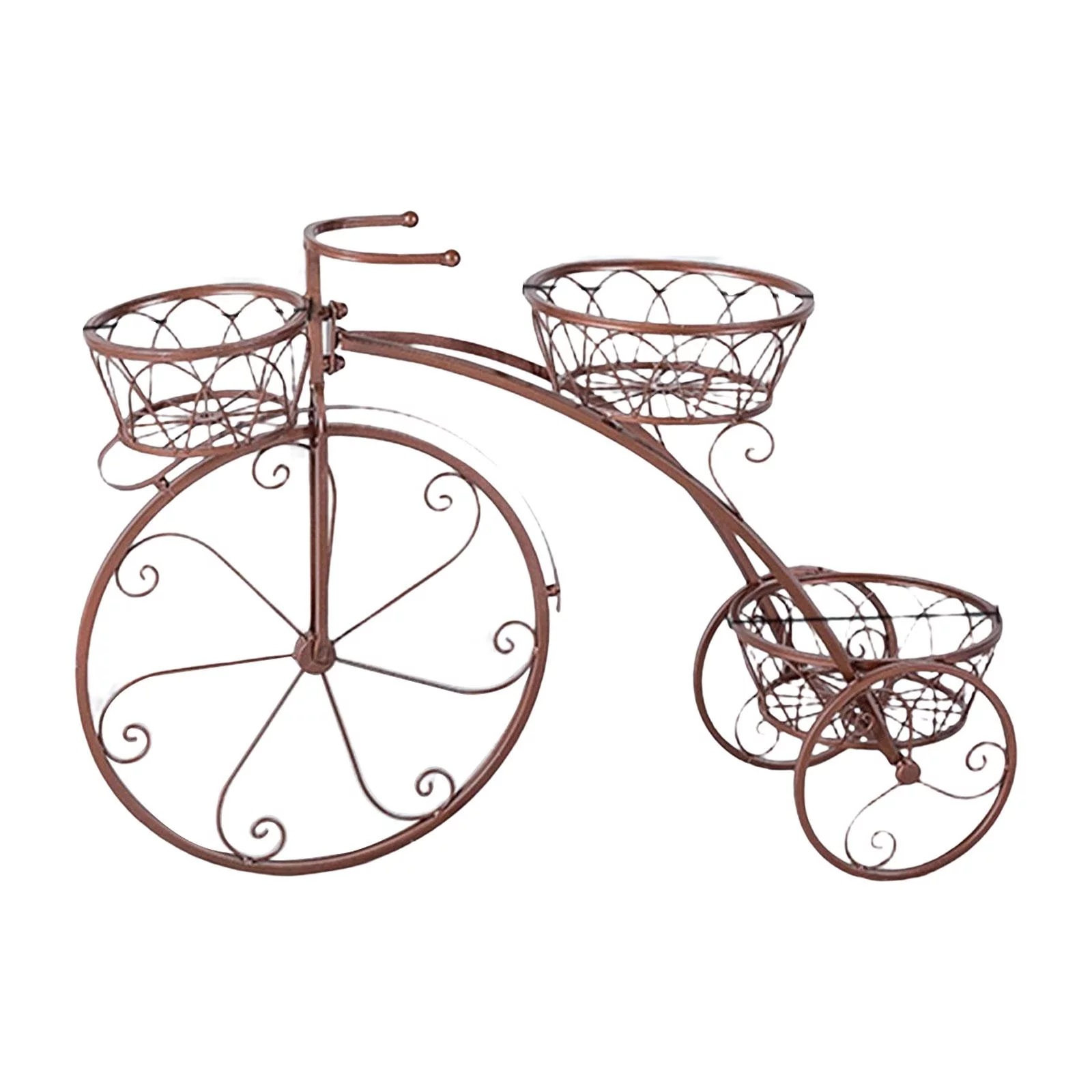 Creative Flower Basket Cart Holder Decorative Storage Shelf Flower Pot Unique Plant Stand for Living Room Balcony Decoration Copper