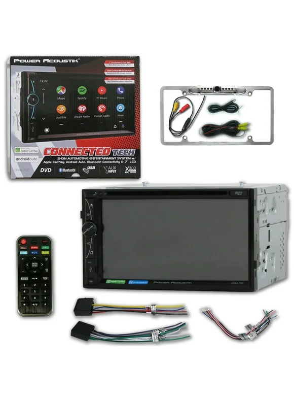 Power Acoustik CPAA-70D 2 Din 7" DVD CD Stereo Bluetooth W/ Apple Carplay & Android Auto with DCO Full License Plate Night Vision Waterproof Back-up Camera