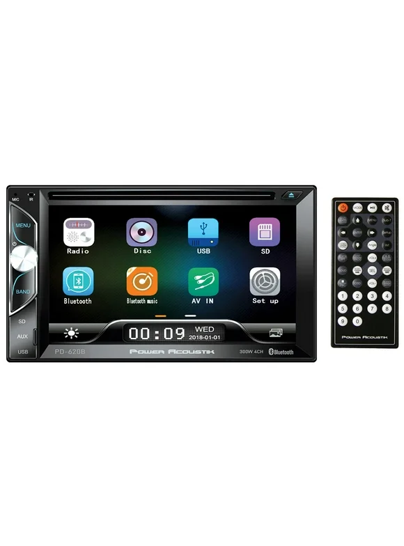 Power Acoustik Double DIN DVD, CD/MP3, FM/AM Car Stereo with Bluetooth Connectivity