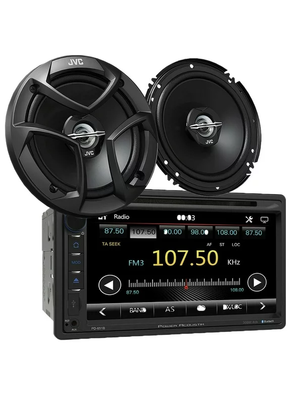 Power Acoustik PD-651B Double DIN Bluetooth DVD/CD Car Stereo + 2 x JVC 6.5" Speakers