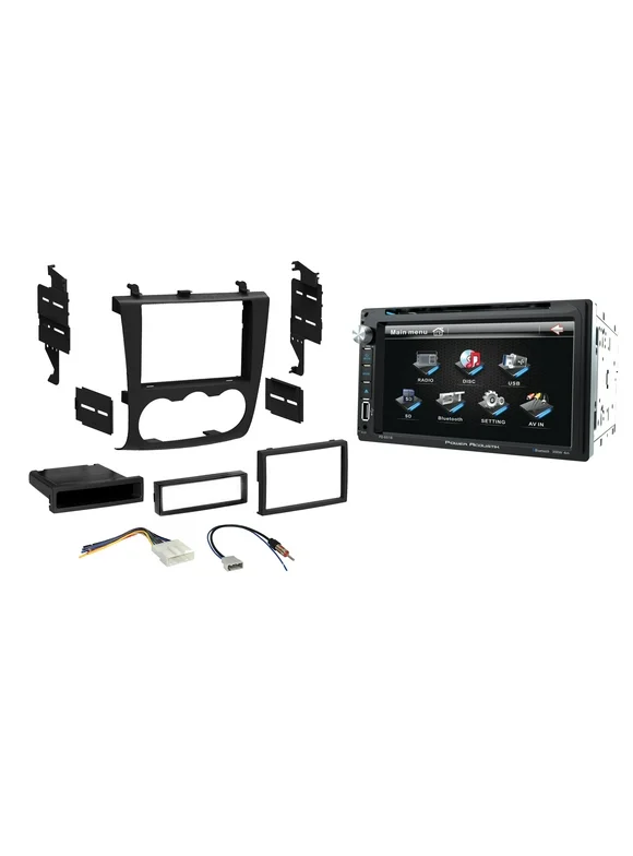 Power Acoustik PD-651B Double DIN Bluetooth In-Dash DVD/CD/AM/FM Car Stereo w/ 6.5" Touchscreen and SD/USB Reader & Single Double DIN Dash Kit Harness for 2007-2012 Nissan Altima