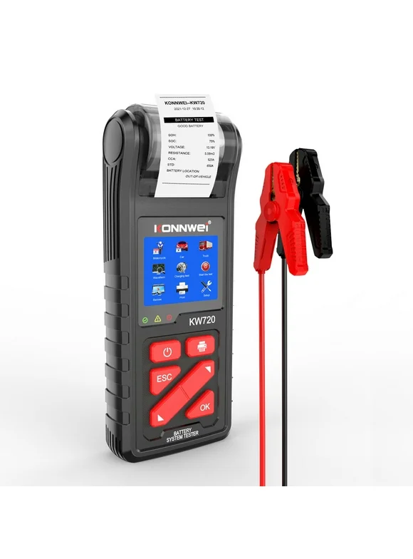 Carevas KW720 Car Battery Tester With Intergrated Printer 24V Battery Load Tester Cranking and Charging System Test Scan Tool for Car Motorcycle Truck