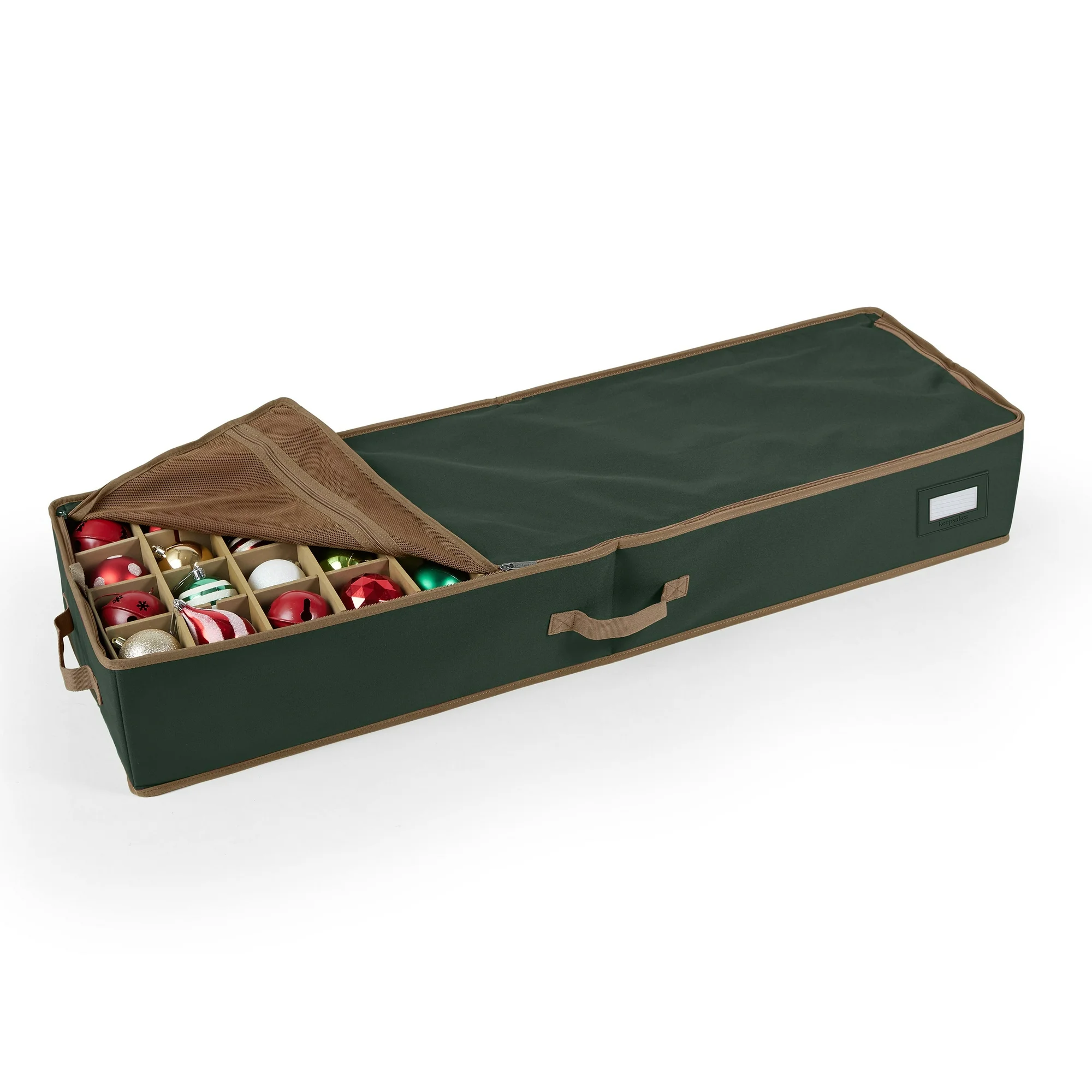 Covermates Keepsakes Adjustable Underbed Ornament Storage Bag, Carrying Handles, Padded Protection - Holiday Storage-Green