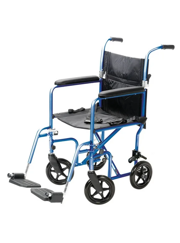 Carex Steel Transport Wheelchair with 19" Seat, Swing-Away Footrests, Blue, 300 lb Weight Capacity
