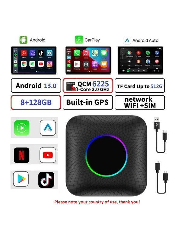 Carlinkit Ai Box Android 13 Led Wireless Android Auto & Apple CarPlay Smart Tv Box QCM6225 For Youtube Netflix Car Accessories